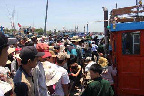 | Hàng trăm người dân đến tận cảng để thăm hỏi |