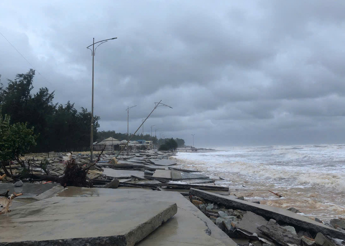Bờ biển đập Hoà Duân (xã Phú Thuận, huyện Phú Vang, tỉnh Thừa Thiên - Huế) tan hoang sau khi bão Trà Mi đổ bộ.