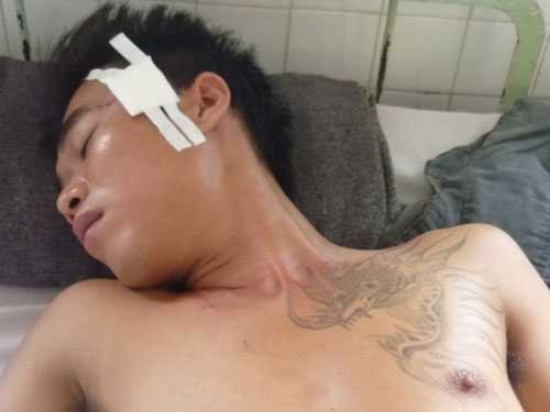 | Anh Nghĩa đang nằm điều trị tại bệnh viện với vết thương ở đầu. |