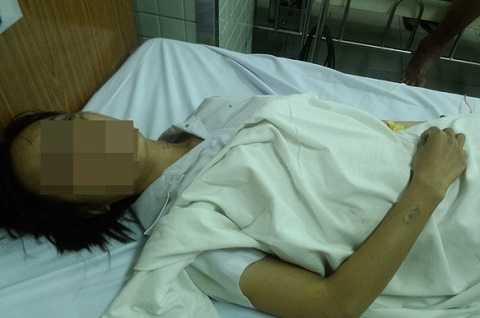 | Nữ sinh H. đang được chữa trị tại bệnh viện |
