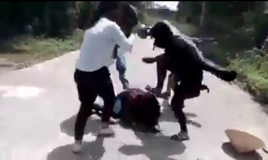 Hai nữ sinh xứ Huế đánh hội đồng bạn học gây xôn xao mạng xã hội - (Ảnh cắt từ clip).