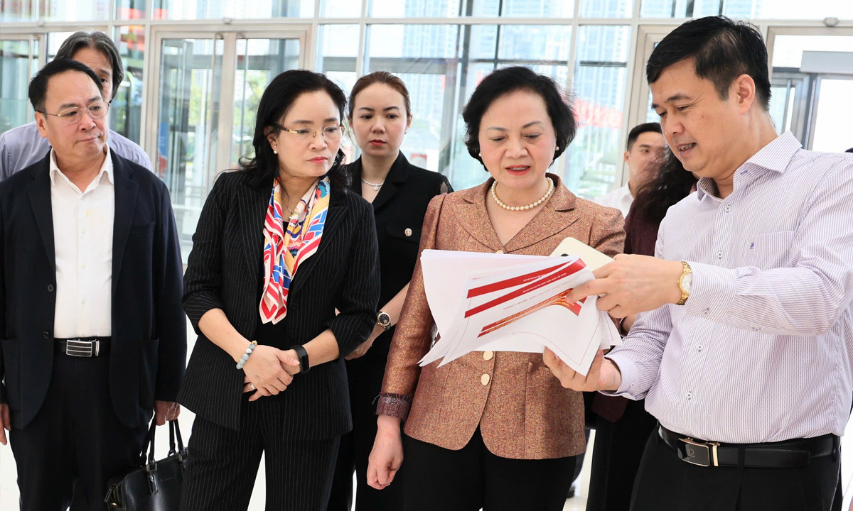 Phó Thủ tướng Phạm Thị Thanh Trà kiểm tra công tác chuẩn bị Đại hội Thi đua yêu nước toàn quốc lần thứ XI. (Ảnh: Thu Giang)