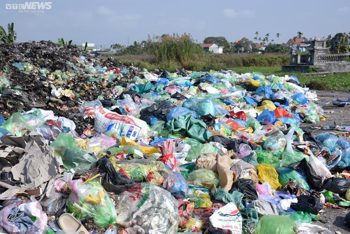 Thời điểm PV VTC News có mặt tại khu vực bãi rác tạm của xã Kiền Bái, lửa vẫn đang âm ỉ cháy. Những túi nilon, bao tải... cháy ngún, nhựa chảy kết dính lại với nhau thành từng mảng. Nhiều người đang cố gắng lục tìm phế liệu trong đống rác thải.
