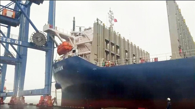 Hình ảnh tàu Maanshan va chạm với cần cẩu dàn tại cảng Đình Vũ, TP Hải Phòng.