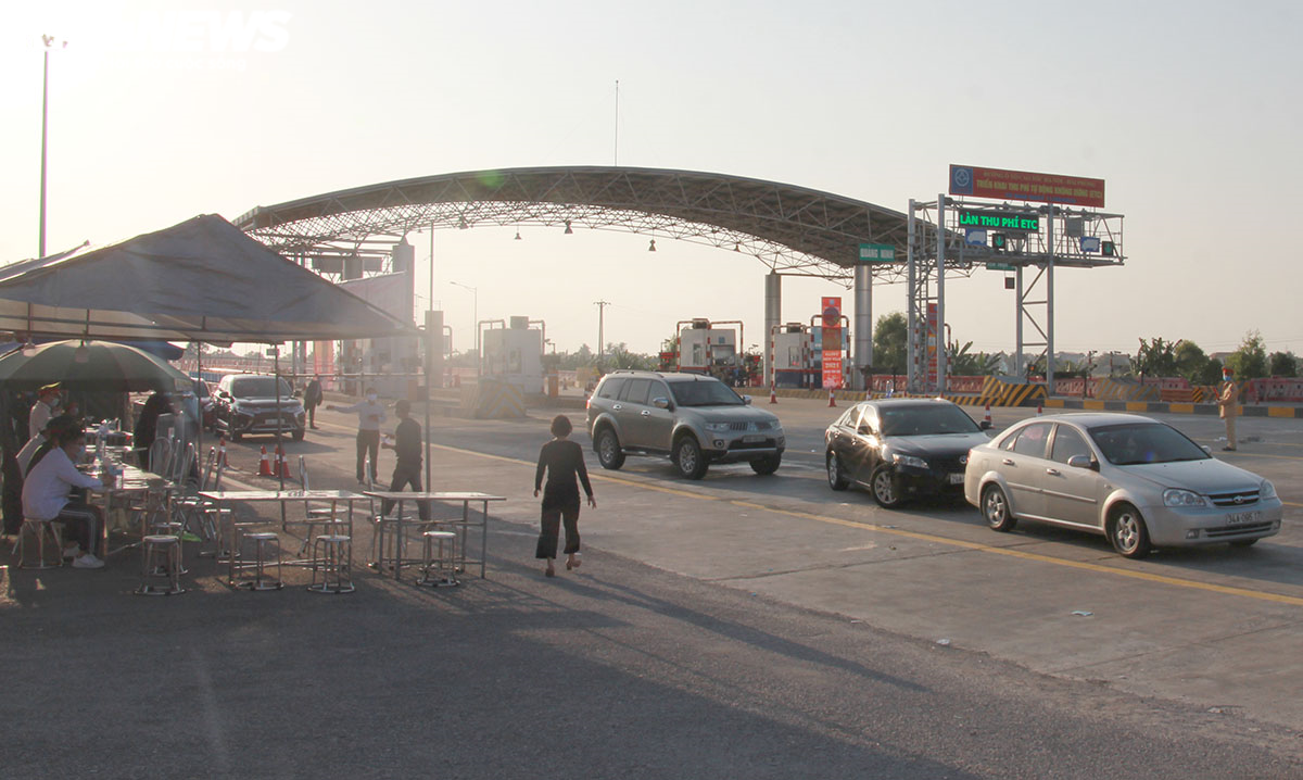 Người dân khai báo y tế tại chốt kiểm soát dịch COVID-19 trên cao tốc Hà Nội - Hải Phòng