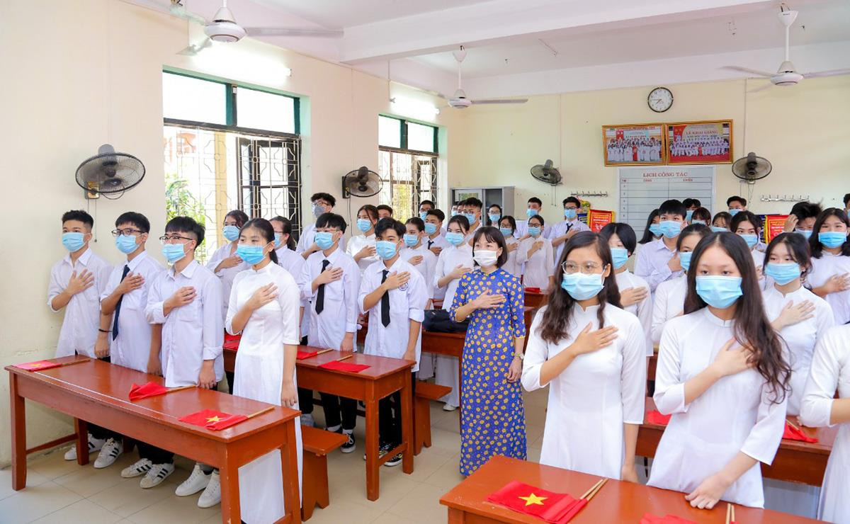 Một tiết chào cờ trong lớp tại trường THPT Lê Hồng Phong (Hải Phòng)