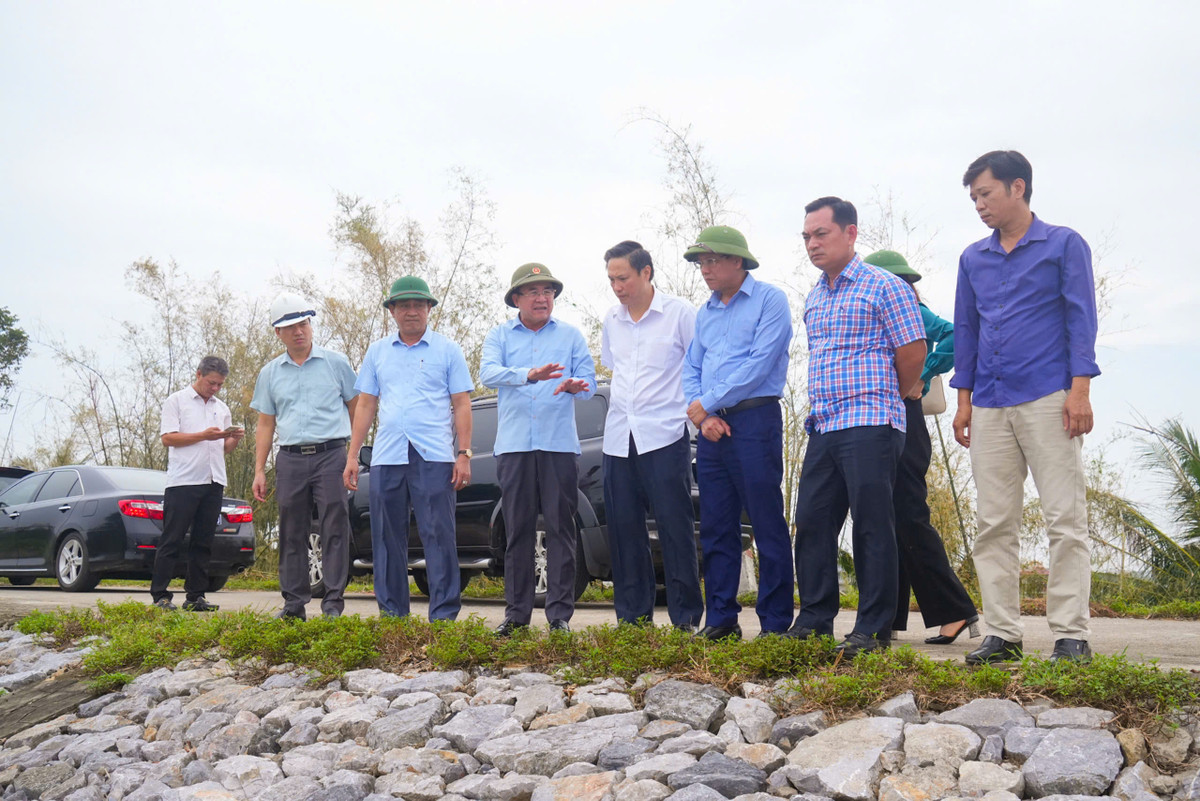 Phó Chủ tịch Thường trực UBND TP Hải Phòng Lê Anh Quân đi kiểm tra hệ thống đê kè trên địa bàn xã Đại Bản, huyện An Dương.