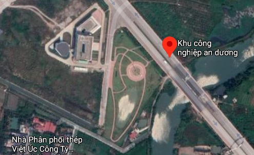 Công trình nằm trước nhà điều hành của Công ty TNHH Liên hợp đầu tư Thâm Việt (Công ty Thâm Việt, Trung Quốc). Còn công ty nằm trong Khu công nghiệp An Dương. Ảnh chụp lúc nguyên trạng: Google Maps.