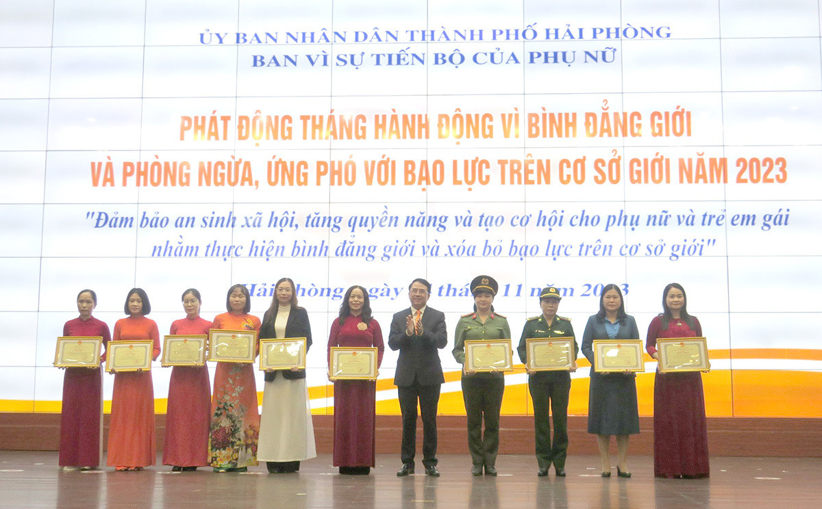 Nhân dịp này, UBND thành phố tặng Bằng khen 5 tập thể và 6 cá nhân có đóng góp tích cực trong việc triển khai thực hiện Tháng hành động vì bình đẳng giới và phòng ngừa, ứng phó với bạo lực trên cơ sở giới năm 2022.