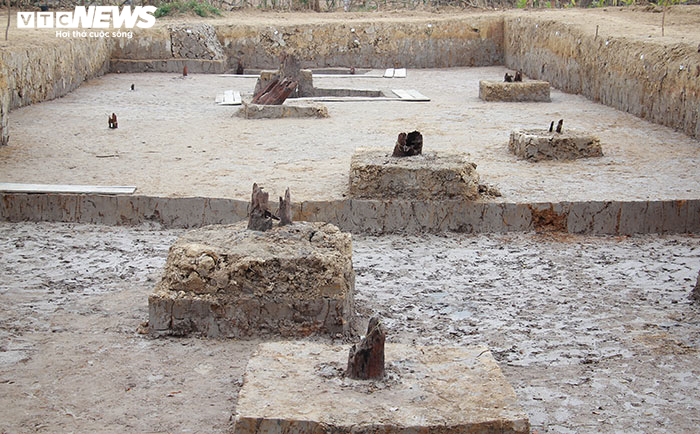 Những chiếc cọc gỗ có niên đại gần 1.000 năm được phát lộ tại cánh đồng Cao Quỳ, xã Liên Khê (Thủy Nguyên, Hải Phòng)