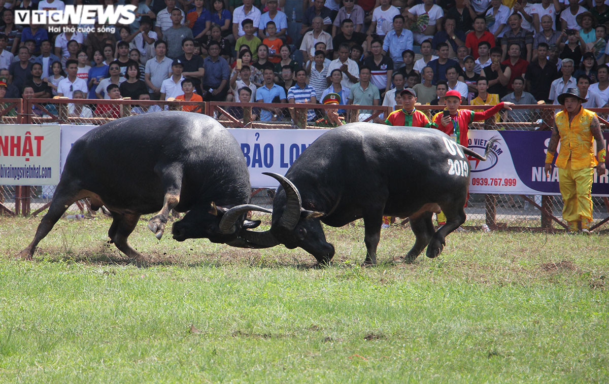 Một pha giao tranh giữa 2 "ông trâu" tại Lễ hội chọi trâu truyền thống Đồ Sơn 2019. (ảnh minh họa)