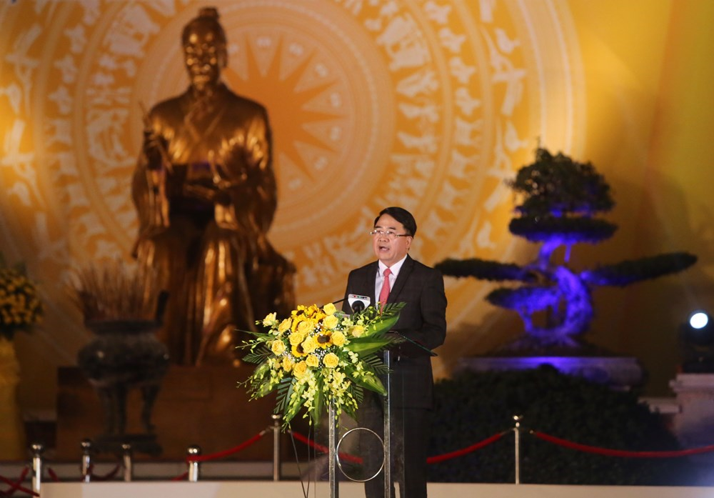 Các học sinh, sinh viên xuất sắc của thành phố dâng hương tại tượng đàiDanh nhân Văn hoá Trạng Trình Nguyễn Bỉnh Khiêm