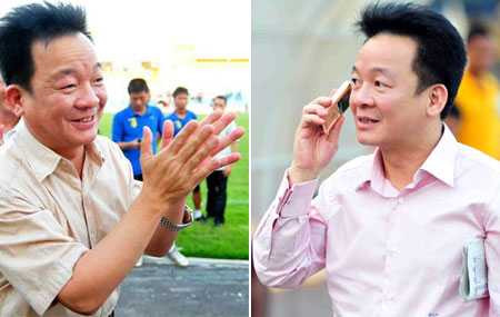 | Bầu Hiển với hai phụ kiện đồng hồ và điện thoại tiền tỷ. |