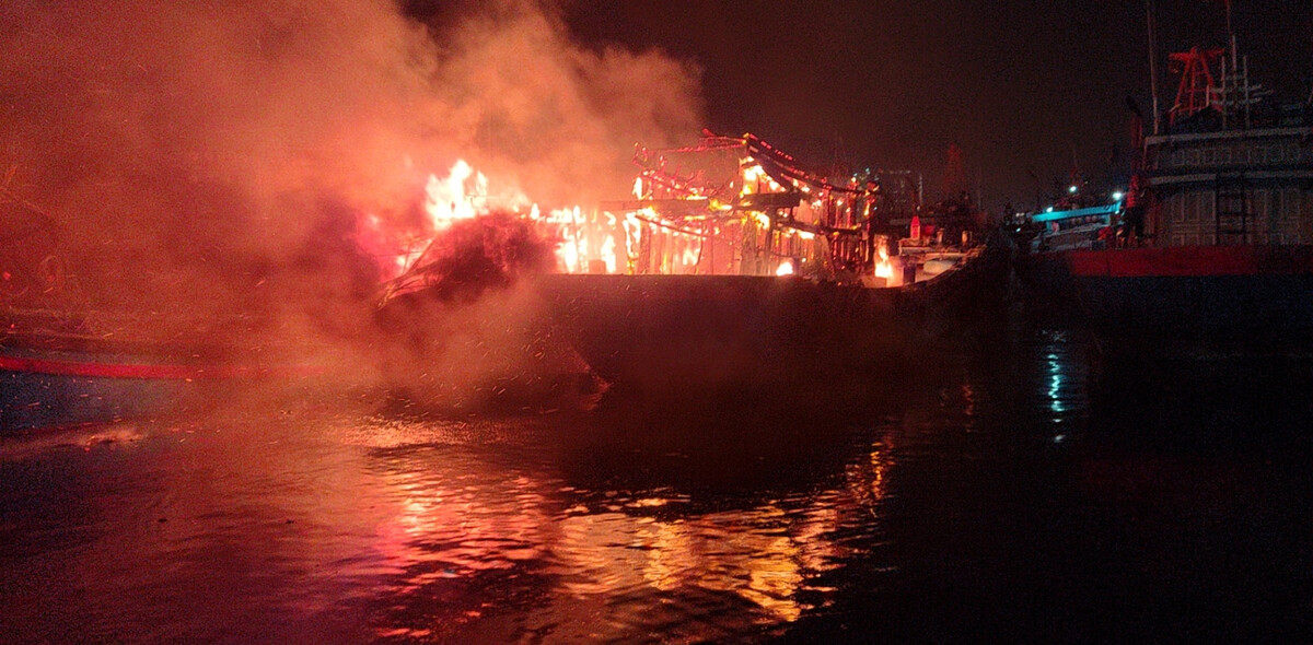 Cụ thể, lúc 21h30 ngày 27/1, tại khu vực cầu cảng số 3 Cảng cá Thọ Quang, quận Sơn Trà xảy ra vụ cháy lớn trên 2 tàu cá là tàu của ngư dân tỉnh Quảng Ngãi là tàu QNg 98831 và QNg 92808.