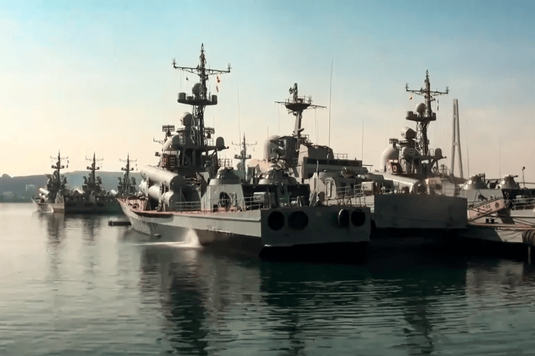 Interfax cho biết các tàu chiến Nga đang thực hiện các nhiệm vụ như một phần của cuộc diễn tập hải quân, trong đó có "tập trận hải chiến, mô phỏng để đẩy lùi một cuộc tấn công tên lửa của kẻ thù từ biển".