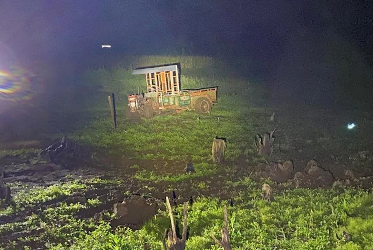 Lúc này, anh Y.T.K. và anh Y.T.M. dùng xà beng, dây cáp để kéo xe công nông lên khỏi chỗ sình lầy, người còn lại ngồi trên xe để lái.