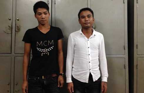 | Phạm Văn Quỳnh (trái) và Phạm Văn Chung tại cơ quan công an |