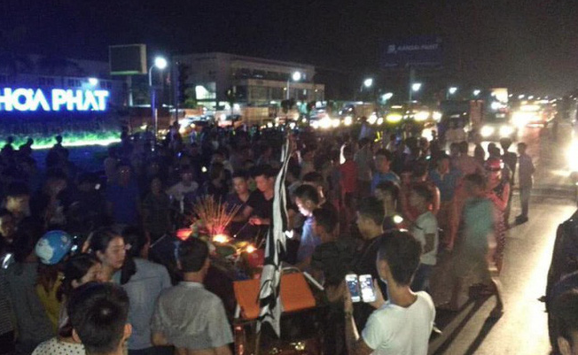 Hình ảnh gia đình mang quan tài thiếu nữ thiệt mạng gây náo loạn quốc lộ 5 vào đêm 20/6.