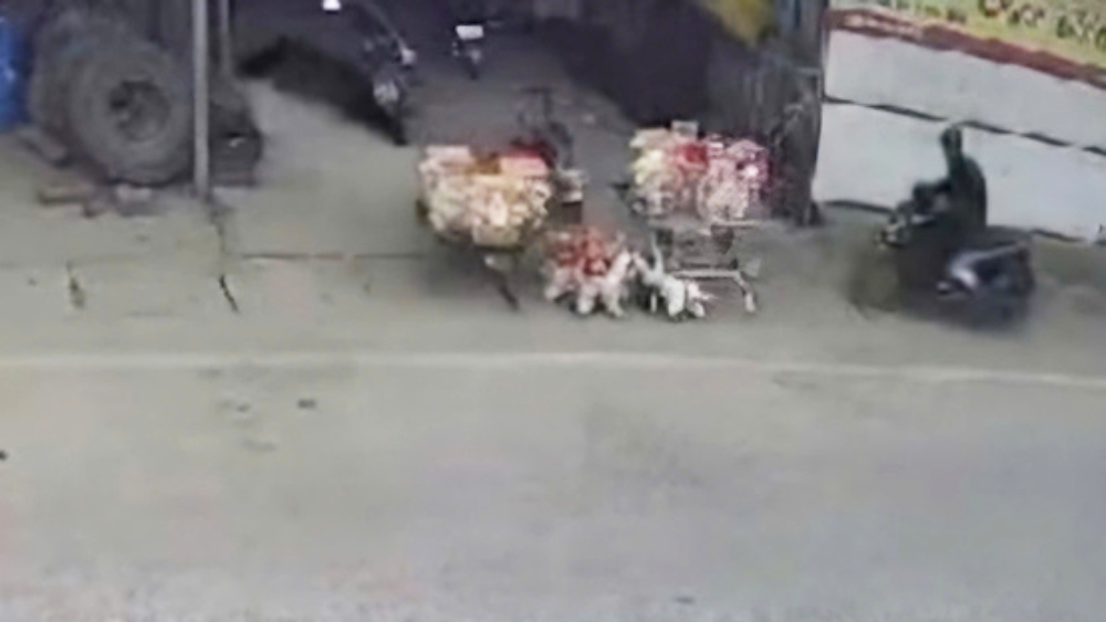 Xe máy lao tới khu vực trước cửa nhà dân gây ra vụ tai nạn thương tâm chiều mùng 2 Tết. (Ảnh cắt từ clip)