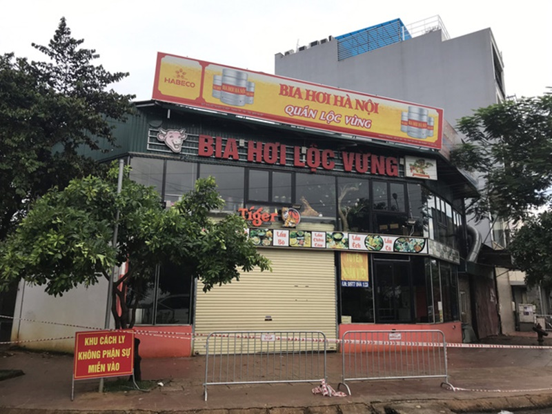Quán bia hơi Lộc Vừng, nơi bệnh nhân 867 từng ở được phong tỏa, cách ly để phục vụ công tác điều tra dịch tễ. (Ảnh: Bộ Y tế).