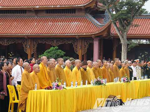| Các Quý Chư Tôn Đức, cùng các đại biểu và hơn 2 vạn phật tử, du khách thành kính trong giờ phút làm lễ chào cờ, khai mạc lễ hội |