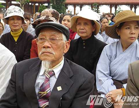 | Cụ Nguyễn Viết Ước (phường Vàng Danh, TP Uông Bí), dù đã 85 tuổi nhưng vẫn dậy từ sáng sớm để đến tham dự lễ khai mạc hội xuân chùa Ba Vàng |