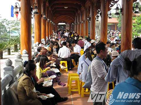 Trong ngày khai hội, nhà chùa đã chuẩn bị 2 vạn suất cơm chay để sau khi dâng hương lễ Phật, các phật tử và khách thập phương thụ lộc, như một món quà đầu năm để mọi người có thêm nhiều sức khỏe, bình an và gặp nhiều may mắn trong năm mới Ất Mùi 2015.