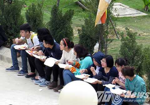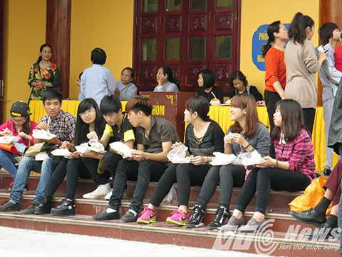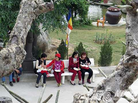 | Sau buổi lễ, phật tử và du khách đến nhận cơm chay do nhà chùa chuẩn bị, như một món quà đầu năm mới, với hy vọng nhận được thêm nhiều sức khỏe, bình an, nhiều may mắn trong năm mới |