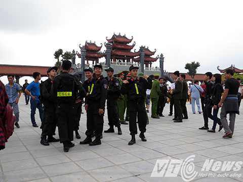 | Các cán bộ, chiến sỹ công an làm nhiệm vụ đảm bảo an ninh trật tự, để lễ hội được diễn ra tôn kính, đảm bảo an toàn |