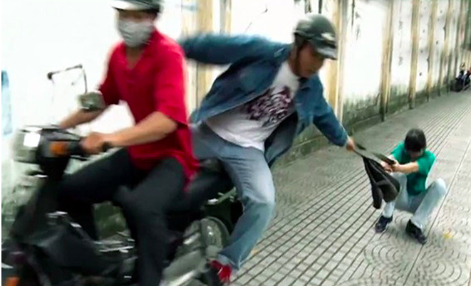 Anh L. bỏ toàn bộ số tiến trên vào túi xách cùng vợ đi xe máy về nhà. Trên đường về, khi đi đến số nhà 79 Phạm Văn Chiêu (phường 14, quận Gò Vấp), vợ chồng anh L. bị 2 thanh niên áp sát, cướp túi tiền.