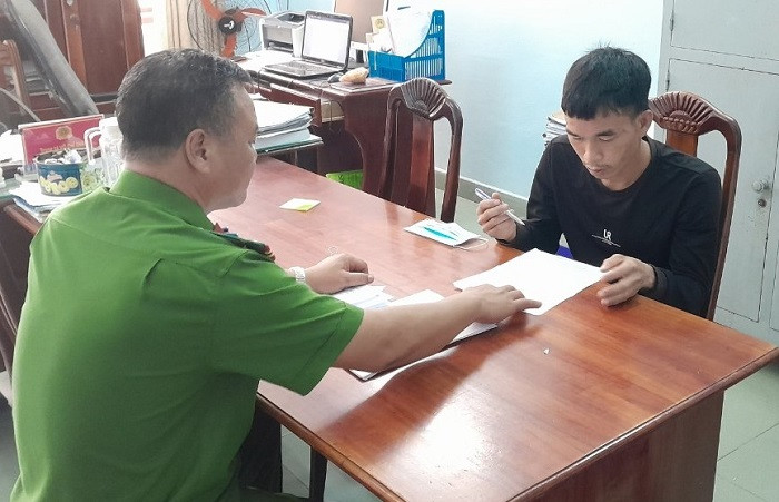 Hồ Công Sơn tại cơ quan công an. (Ảnh: C.A)