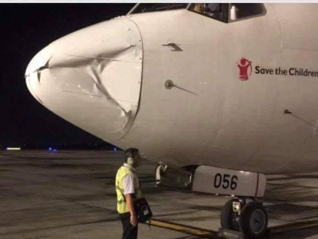 Máy bay Boeing 737 của một hãng hàng không Hàn Quốc bị móp đầu khi hạ cánh tại sân bay Tân Sơn Nhất rạng sáng ngày 19/9/2019. (Ảnh: Báo Giao thông)