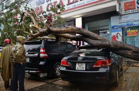 Rạng sáng 20/5/2015, trước nhà sách Fahasa Gia Lai thuộc Chung cư Hoàng Anh Gia Lai (đường Hoàng Văn Thụ, phường Diên Hồng, TP. Pleiku, Gia Lai), một cây xanh bị bật gốc đè lên hai chiếc xe ô tô đậu gần đó.