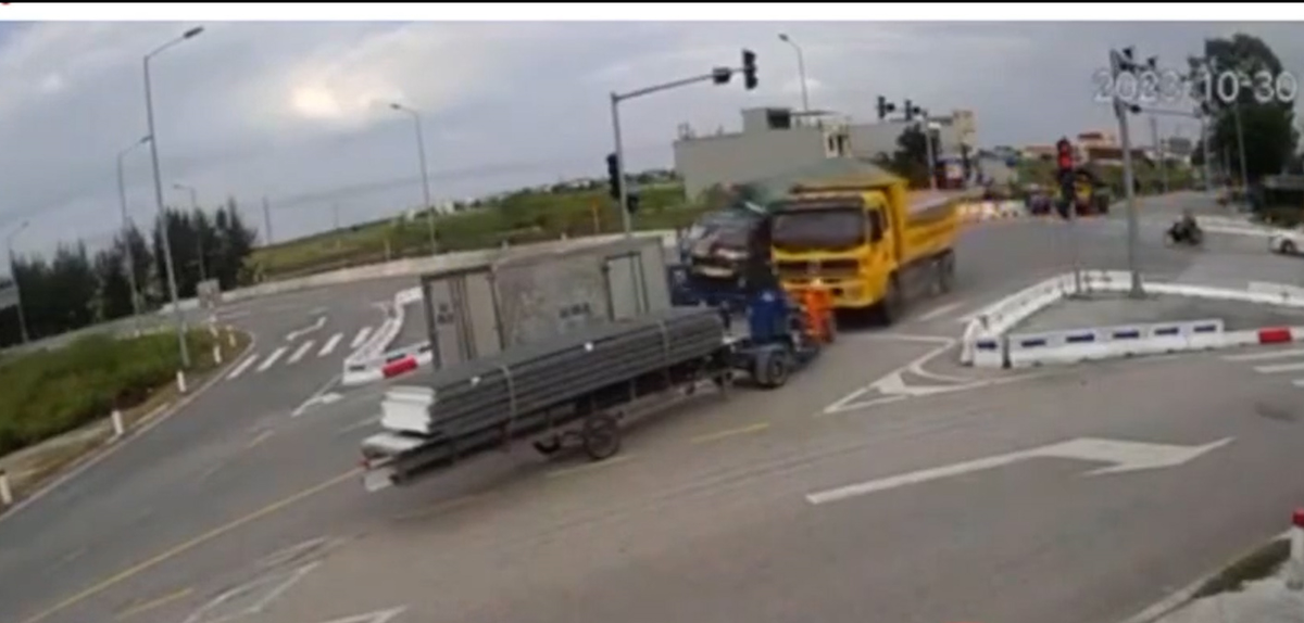 Hai chiếc xe tải khi qua ngã tư tại huyện Ninh Giang, Hải Dương không chú ý quan sát nên đã xảy ra tại nạn khiến người đi đường hoảng sợ.