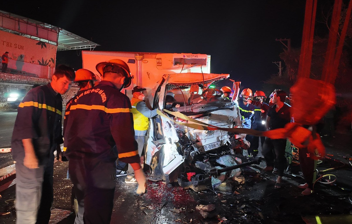 Cú va chạm mạnh khiến tài xế N.Đ.T. và anh N.V.K. tử vong, mắc kẹt trong cabin. Hai người trên xe tải còn lại bị thương.