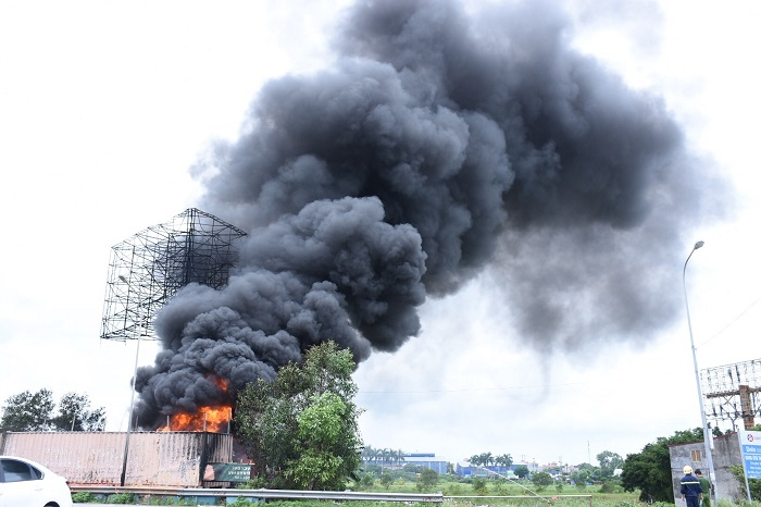Do cháy xe chở xăng dầu nên ngọn lửa bùng cháy rất nhanh, cháy lan cả sang các kho bãi gần đó.