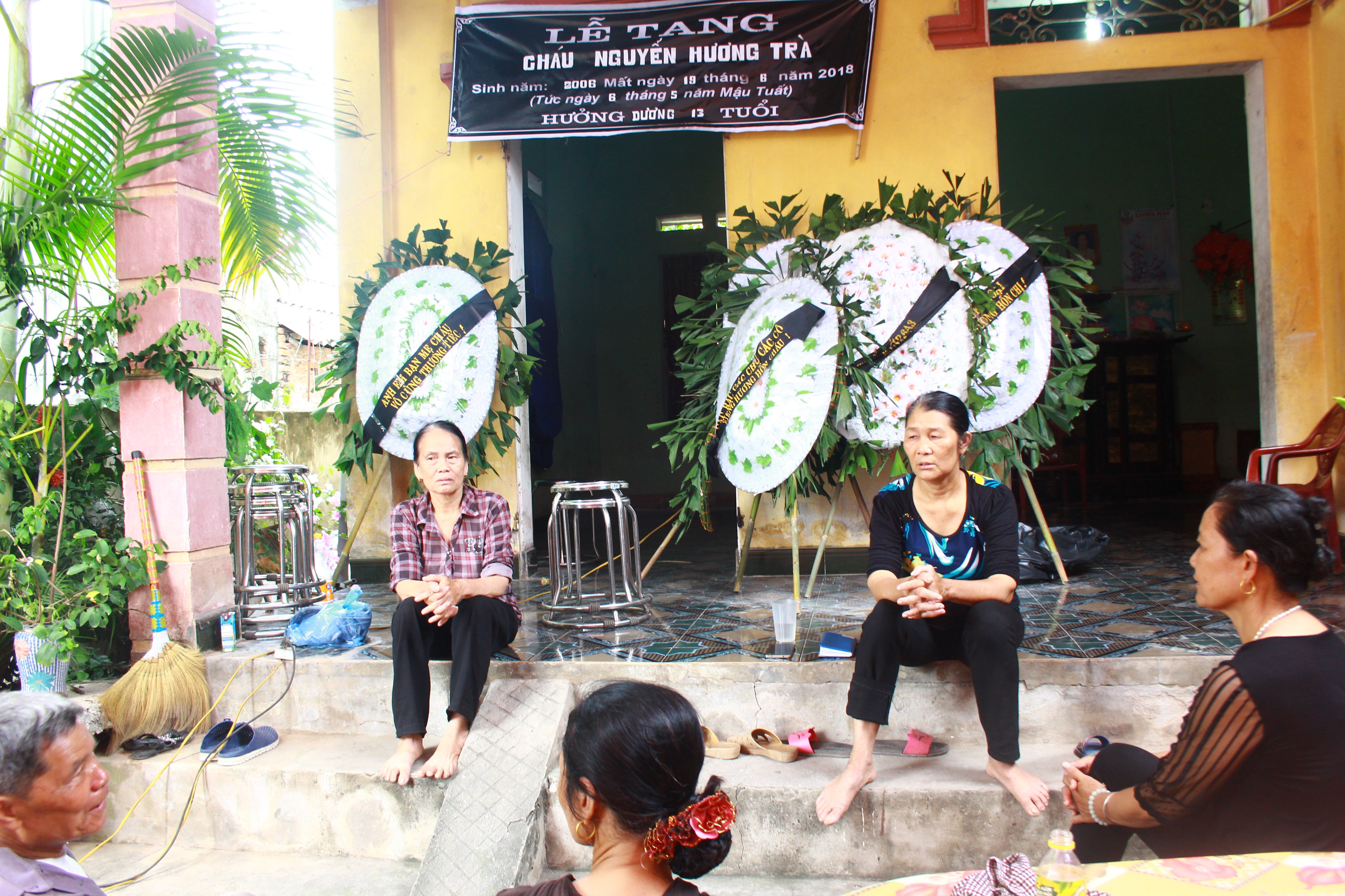 Hàng xóm đến chia buồn cùng gia đình cháu Trà.