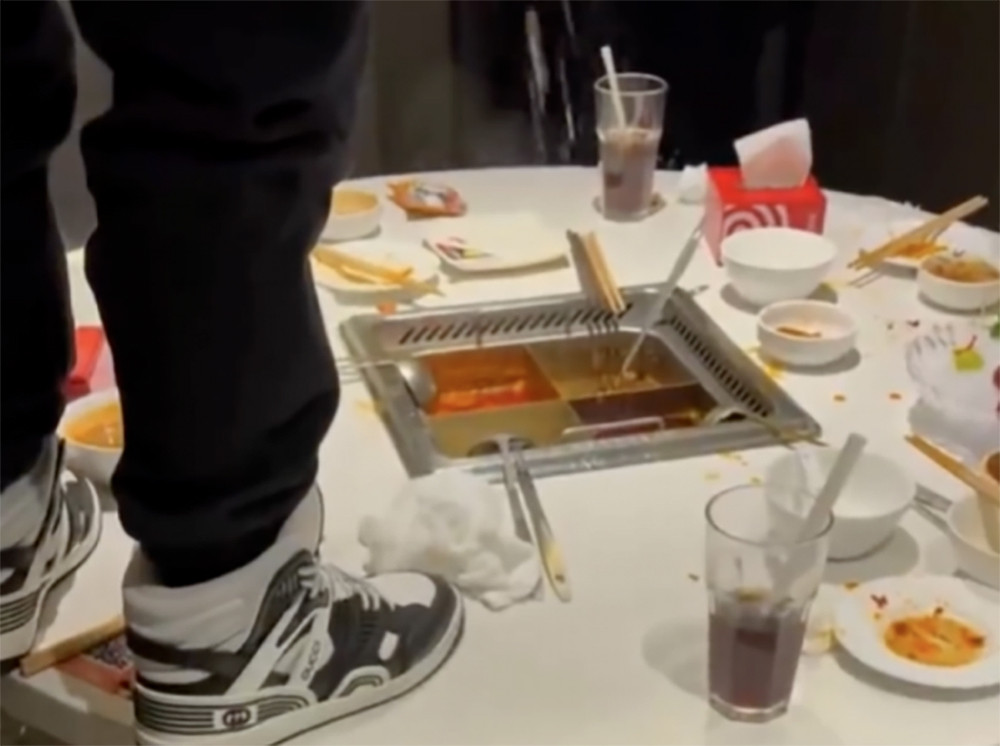 Ngày 12/3, Haidilao, thương hiệu nhà hàng lẩu nổi tiếng tại Trung Quốc, đưa ra tuyên bố truy cứu trách nhiệm dân sự hai người đàn ông liên quan đến vụ bê bối. Theo đó, vào ngày 24/2, trong phòng riêng tại nhà hàng Shanghai Bund của Haidilao, một khách hàng nam đứng trên bàn với đôi chân đi giày và đi tiểu vào nồi lẩu.