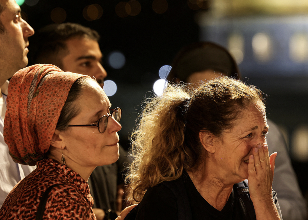 Thân nhân của những người bị Hamas bắt làm con tin tổ chức lễ cầu nguyện ở Jerusalem hôm 25/10. (Ảnh: Reuters).