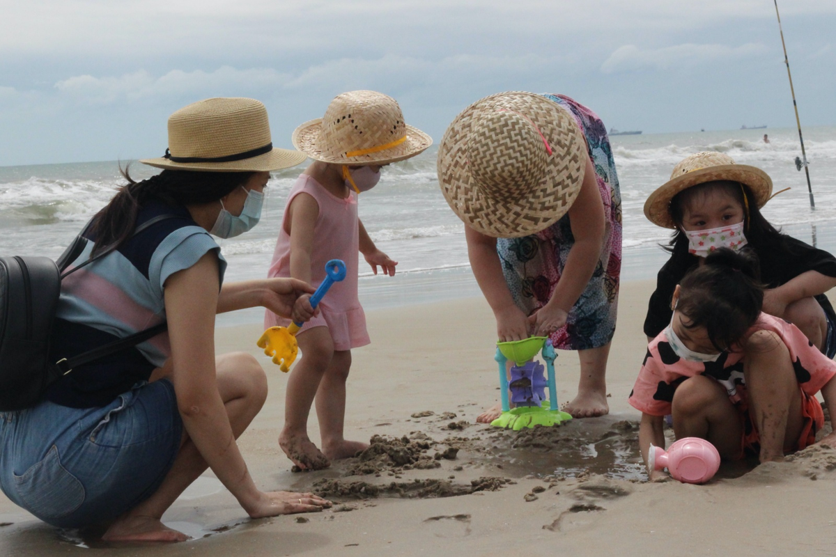 Đến TP Vũng Tàu du lịch cuối tuần cùng gia đình, bà Sáu (ngụ TP Thủ Đức, TP.HCM) cho biết, ngày cuối tuần bà tranh thủ đưa hai cháu nhỏ đi tắm biển vì hơn 6 tháng qua thực hiện giãn cách xã hội không ra khỏi nhà. “Biết là không được ngủ lại như trước đây, nhưng vẫn cố gắng cho các cháu đi chơi để đỡ căng thẳng trong việc học online. Chúng tôi sáng đi, chiều tối quay về”, bà Sáu cho hay.