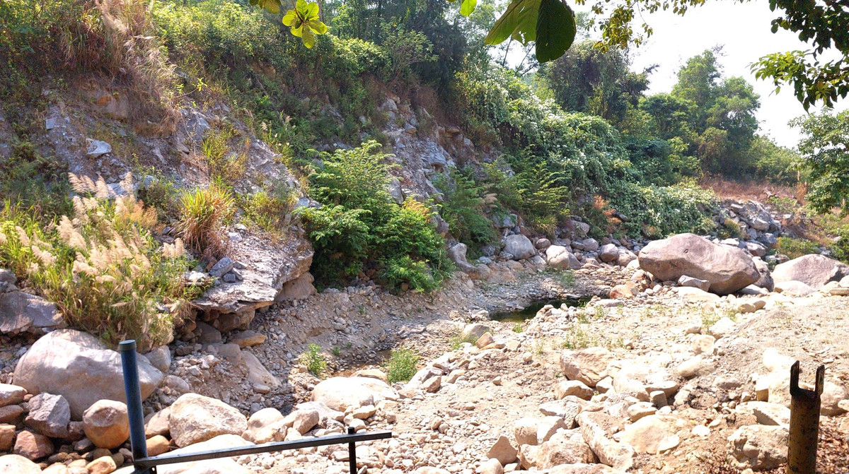 Có những đoạn dài cả trăm mét, dòng suối khô khốc, chỉ còn lại đá và rác. Để tưới cho cây trồng ở vùng hạ du, một số người phải sử dụng hệ thống ống dẫn lấy nước từ các điểm có nước tù đọng trên thượng nguồn.
