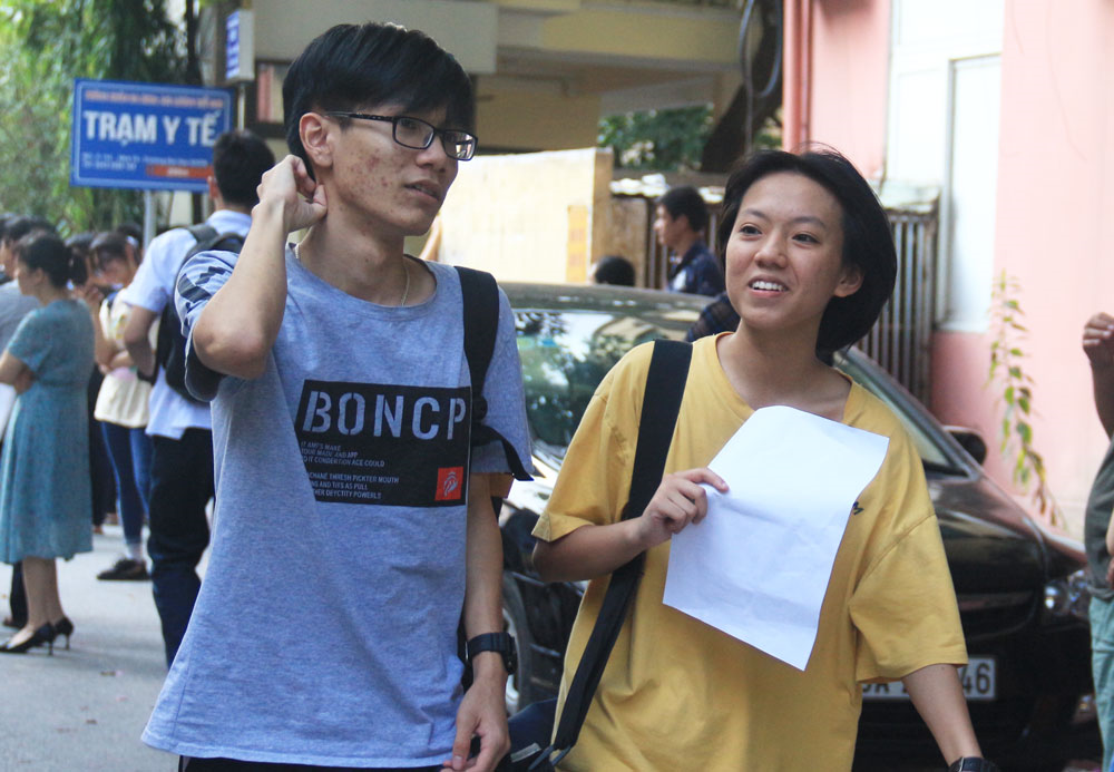 Thí sinh tươi cười khi bước ra khỏi phòng thi môn Địa lý.