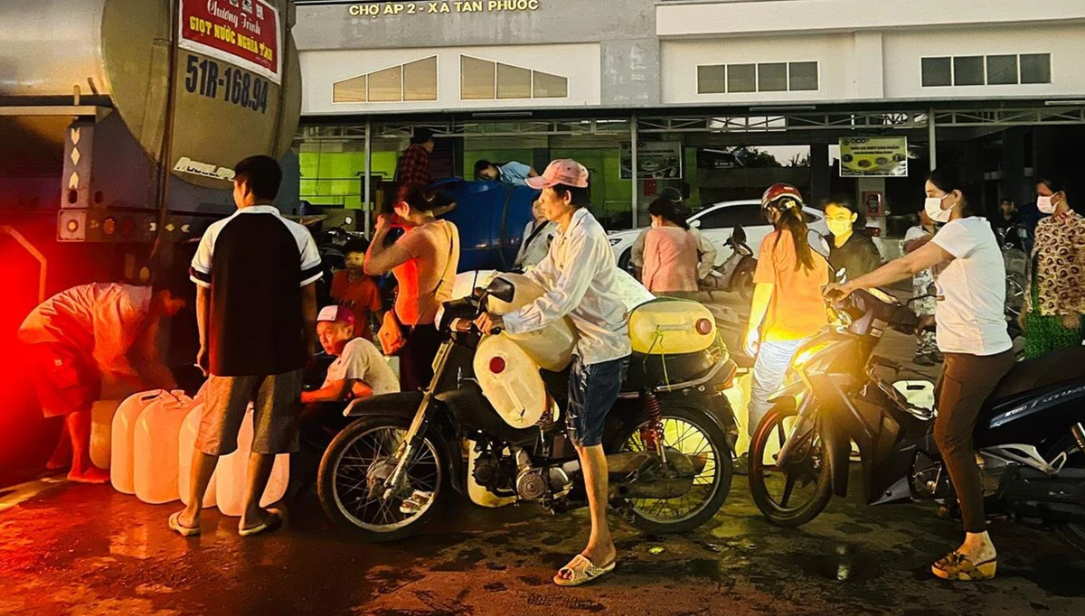Theo người dân, hạn mặn kéo dài nước tích trữ đã sử dụng hết nên việc thiếu nước rất trầm trọng, do đó phải lấy nước kể cả ban đêm.