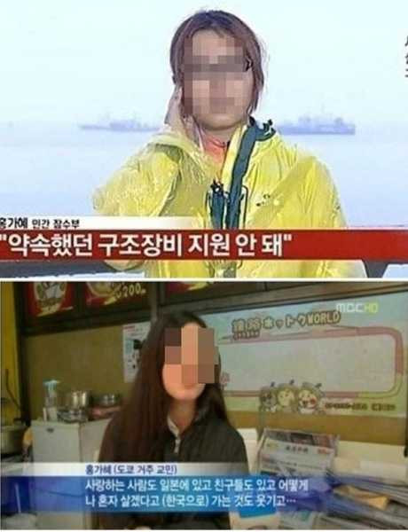 Cảnh sát Nam Jeolla đã bắt giữ phóng viên tên Hong này khi cô tuyên bố lực lượng bảo vệ bờ biển đã nói với những thợ lặn là họ đang lãng phí thời gian. Phóng viên này còn dẫn lời các quan chức chính phủ nói rằng gia đình các nạn nhân đang chờ đợi vô ích vào một phép màu.