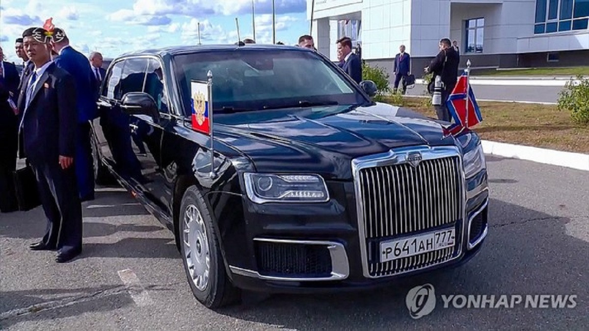 Chiếc xe limousine Aurus Senat mà Tổng thống Nga Vladimir Putin và Chủ tịch Triều Tiên Kim Jong-un sử dụng khi họ gặp nhau tại Vostochny Cosmodrome ngày 13/9/2023. (Ảnh: Yonhap)