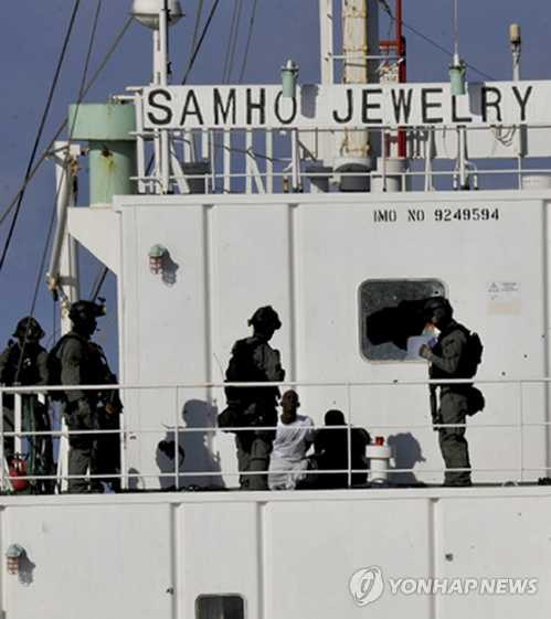 Lính đặc công của Hàn Quốc từ một con thuyền nhỏ leo lên tàu chở hàng này giữa lúc súng nổ. Họ cố gắng đột nhập vào con tàu và đưa một số con tin ra ngoài bằng một máy bay trực thăng hải quân. 8 hải tặc đã bị bắt.