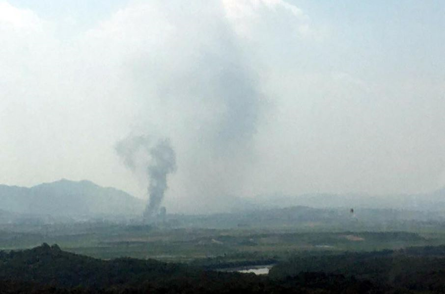 Khói tại khu công nghiệp Kaesong sau vụ nổ. (Ảnh: Reuters)