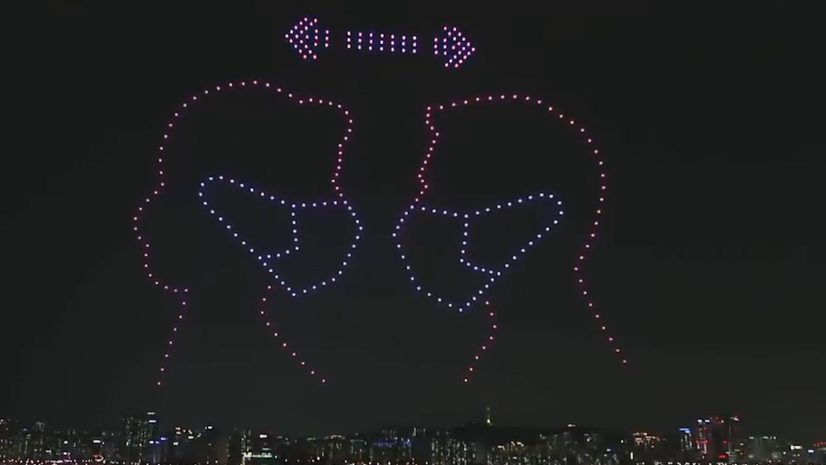 Màn trình diễn của 300 chiếc máy bay không người lái (drone) tạo ra nhiều hình ảnh khác nhau nhằm nâng cao nhận thức của người dân về dịch COVID-19.