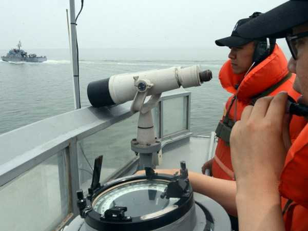 | Hải quân Hàn Quốc tuần tra trên vùng biển gần đường ranh giới trên biển với Triều Tiên |