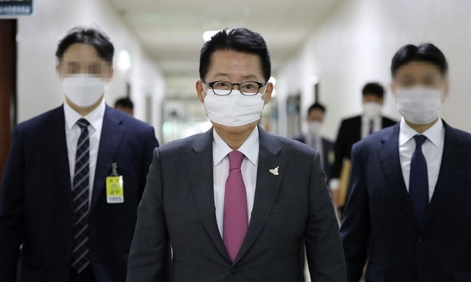 Giám đốc Cơ quan Tình báo Quốc gia Hàn Quốc Park Jie-won trên đường tới họp với Ủy ban Tình báo quốc hội hôm 25/9. (Ảnh: Yonhap)